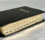 Biblie mică, ediție de buzunar, copertă piele, cu marginii aurii și index.